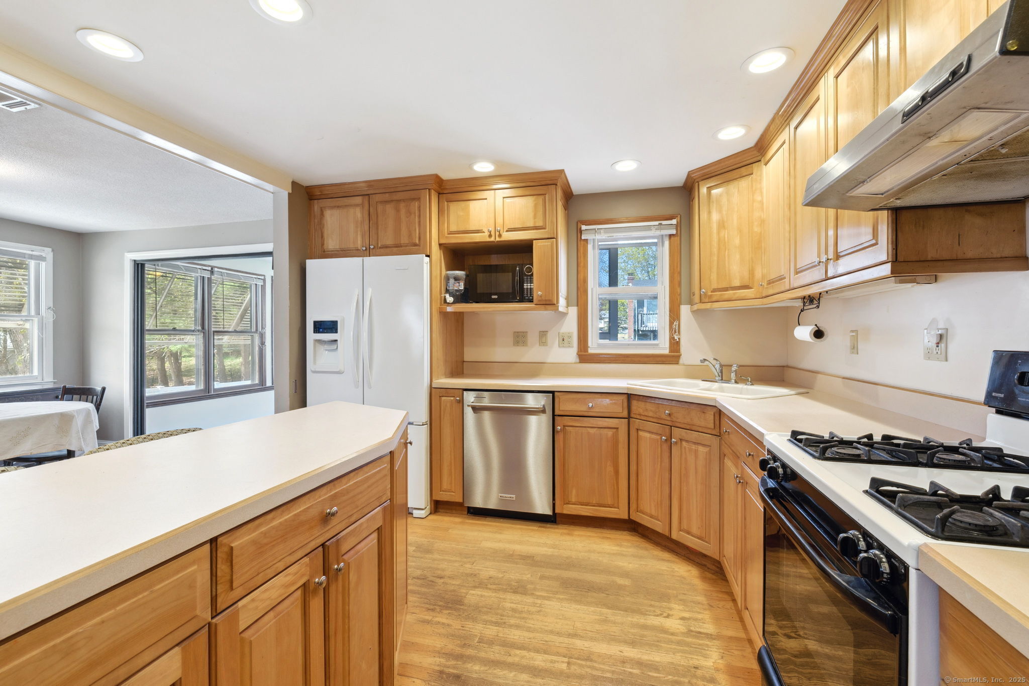 Welcome to 119 Great Swamp Road, a spacious raised ranch in the heart of Glastonbury offering comfort, versatility, and convenience. This well-maintained home features 4 bedrooms, 3 full baths, and a flexible lower-level in-law suite perfect for extended family or guests. The bright and airy main level has an open-concept living and dining area with hardwood floors and a large picture window. The kitchen offers ample cabinet space and flows effortlessly to the dining area leading to a generous sunroom, great for entertaining. The primary bedroom has a full attached bathroom. Downstairs, the finished lower level includes a partial kitchen, full bath, living space, bedroom, ideal for multi-generational living or extra living space. Car enthusiasts and hobbyists will appreciate the oversized 2-car garage, plus an additional carport for extra coverage. Set on an open lot with mature trees, this home offers both privacy and accessibility, just minutes to town amenities, highways, and schools. Public utilities with natural gas! Don't miss this unique opportunity!